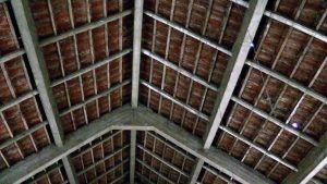 Des tuiles plates rectangulaires (4,5 cm X 3 cm) sont utilisées pour le recouvrement de la toiture.