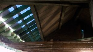 L’étanchéisation aux matières liquides de cette toiture à versants est assurée par la sous-toiture qui doit évidemment être étanche à l’eau et résistante à l’humidité. Jusqu’alors, il n’y a jamais eu de sous-toiture comme on peut le voir sur les photos présentant la situation existante avant travaux.
