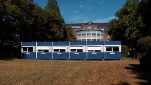 Après travaux, les élèves ayant cours dans les containers rejoindront le nouvel étage aménagé en classes au dernier étage du bâtiment principal et les containers seront supprimé au profit de tout un espace vert qui regagnera du terrain.