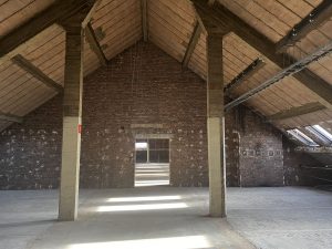 En isolant les pans de cette toiture à versants, un grand volume allant jusqu’à 6m de hauteur (au niveau du faîtage) est isolé. Ce grand volume est restructuré à l’aide de plafonds suspendus acoustiques créant des volumes intérieurs développant une hauteur sous-plafond proche des 3m (de 2,70 m à 3m). De futurs travaux ultérieurs d’aménagement seront nécessaires pour investir cet espace encore disponible sous le faîtage. D’autres cas d’étude (mettre lien vers Sart d’Avette Flémalle + La Gaminerie à Lessines) mettent en évidence une alternative à l’isolation des pans de toiture par une isolation via le plancher des combles.
