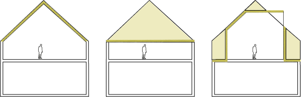 Que les combles soient occupés ou non, l’isolation peut être posée au-dessus, en dessous ou entre les éléments de la charpente ou du plancher des combles. Ces trois positions de base peuvent, en fonction de la réalité de terrain, se combiner.
