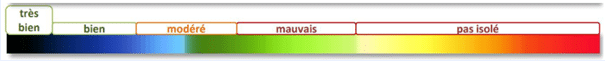 Plus les toitures émettent de la chaleur, plus elles se rapprochent des tonalités rouges. Une clé d’interprétation des résultats est disponible pour déterminer la classe d’émission selon l’échelle suivante :