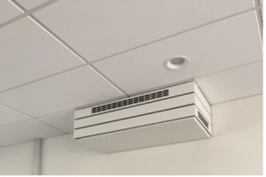 La diffusion de l’air neuf à l’intérieur de chaque classe est obtenue par une ou plusieurs bouches, soit murales, soit plafonnières.
