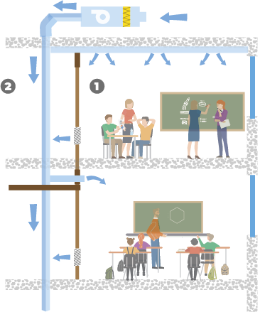 L’objectif principal de la ventilation des salles de classe est de créer des conditions environnementales intérieures qui réduisent le risque de problèmes de santé chez les élèves et minimisent leur inconfort, afin d’éliminer tout effet négatif sur l’apprentissage.