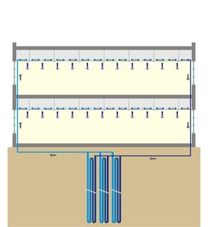 Des échangeurs de type forage vertical, indépendants de la structure du bâtiment, sont également possibles.