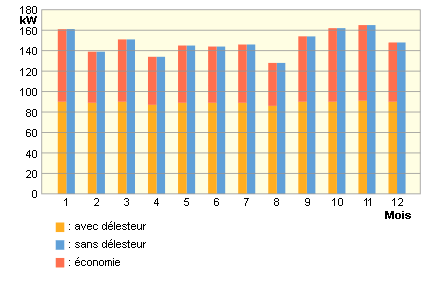 Si la puissance appelée dépasse le seuil fixé, il y a délestage des équipements qui sont raccordés au délesteur durant des périodes courtes.