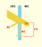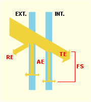 TE : facteur de transmission directe du vitrage, RE : facteur de réflexion directe, AE : facteur d’absorption directe, FS : facteur solaire de transmission totale d’énergie à travers le vitrage.