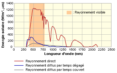 Lorsque l’énergie solaire est interceptée par une paroi, une partie est réfléchie vers l’extérieur, une partie est absorbée par les matériaux, une partie est transmise à l’intérieur.