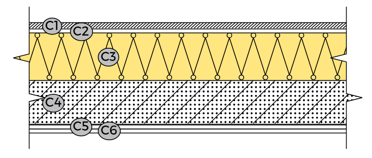 Nous travaillons donc ici sur base des bibliothèques d’éléments prédéfinis dans TOTEM (planchers, murs, toitures,…). Il s’agit donc de bien de discuter de complexes multicouches, et non de matériaux individuellement.